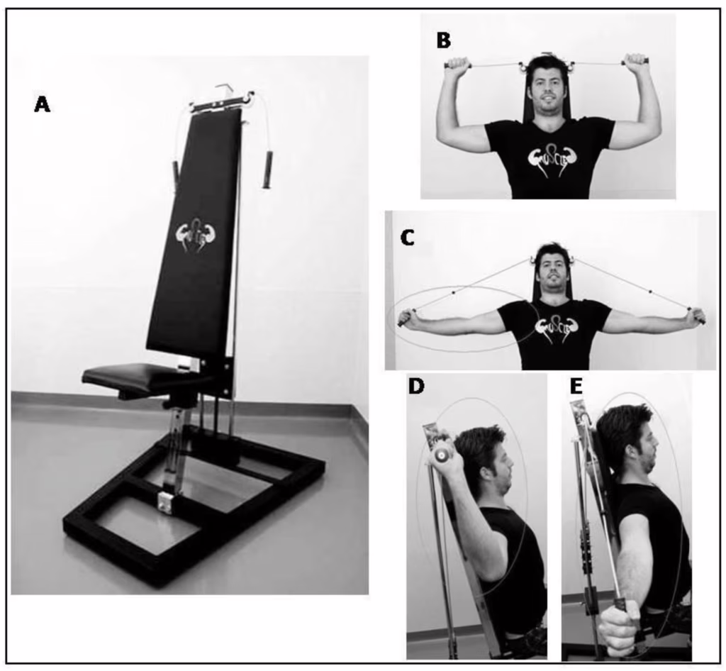 Il dispositivo è costituito da un sedile con schienale calibrato con tre carrucole collegate a dei pesi programmabili e i tempi di esecuzione dell’esercizio sono dell’ordine di pochi minuti al giorno. Può essere utilizzato praticamente da tutti e ad individui di ogni età; inoltre, è facilmente collocabile sia nel pubblico che nel privato.