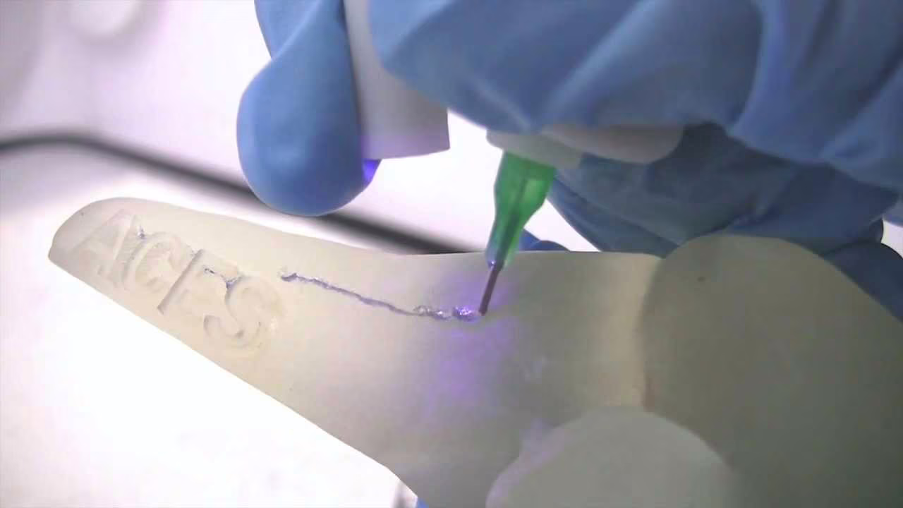 Non appena il materiale viene espulso dalla penna, grazie all’azione di una sorgente di luce ultravioletta a bassa potenza fissata sulla BioPen, esso viene solidificato. Questo permette al medico di creare uno scaffold 3D strato per strato.
