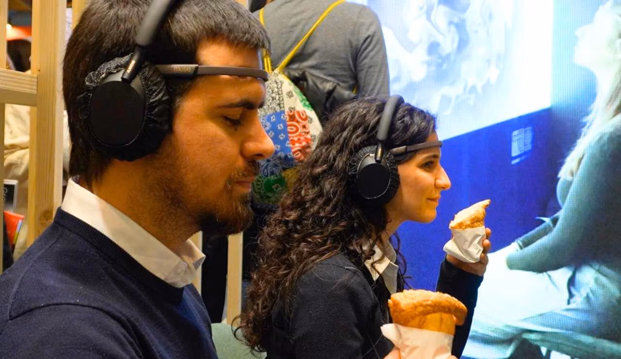 La durata di ogni sessione è estremamente flessibile e si costruisce in base al ritmo dell’evento. Generalmente, l’esperienza si sviluppa in tre fasi: un breve setup iniziale, in cui viene posizionato il sensore; una fase centrale di stimolazione sensoriale, che può variare da pochi secondi a diversi minuti; e infine un momento di restituzione, in cui viene spiegato il significato della rappresentazione generata. Questa struttura consente di passare con naturalezza da interazioni rapide a percorsi più approfonditi, mantenendo sempre alta la qualità dell’esperienza.