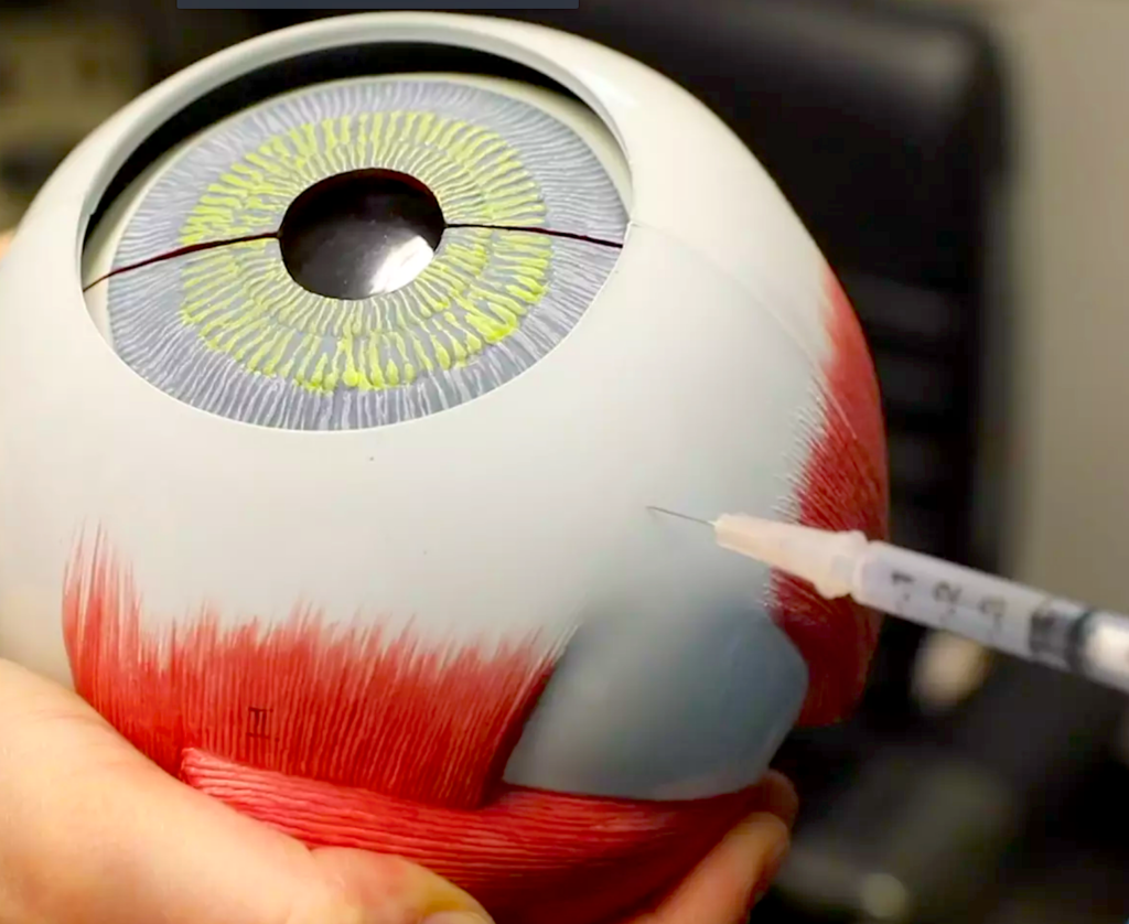 La particolarità di questa protesi è il suo stato: è completamente liquida e il suo inserimento prevede un intervento chirurgico mini-invasivo per aprire la sclera, ovvero la parte più esterna dell’occhio, al fine di creare una tasca nella coroide in cui viene infilato l’ago della siringa per iniettare la soluzione.