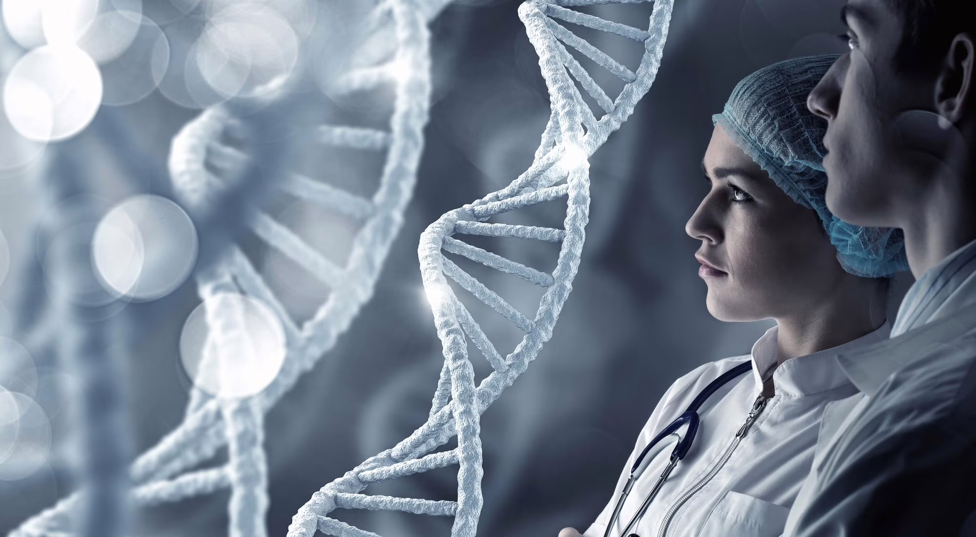 Young scientists making dna research in clinical laboratory