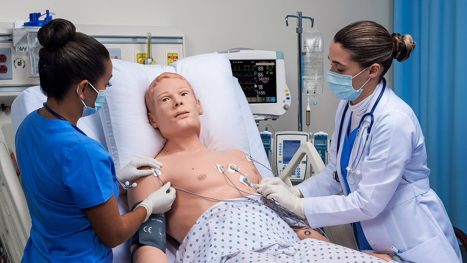 Quando si parla di manichini utilizzati per la formazione in ambito medico si pensa subito ai “mezzi busti” utilizzati per la lezioni dei corsi di primo soccorso (BLS, Basic Life Support), dispositivi utilizzati per provare sul campo le pratiche teoriche relative alla respirazione cardiopolmonare. Ma la realtà è che ora esistono migliaia di prodotti afferenti a specifiche branche della medicina. Dalle teste per praticare l’intubazione ai phantom, veri e propri blocchi di silicone che replicano le proprietà della pelle umana utilizzabili con ecografi reali per simulare l’esecuzione di esami diagnostici. Questi dispositivi, utili per allenare una specifica pratica, vengono molto spesso chiamati trainer. Ma sicuramente le principali novità e migliorie in ambito di simulazione in medicina sono legate al mondo dei cosiddetti Simulatori Avanzati, o simulatori iperrealistici, repliche di pazienti riprodotti in un manichino sempre più fedele alla realtà, qui di seguito illustrati.