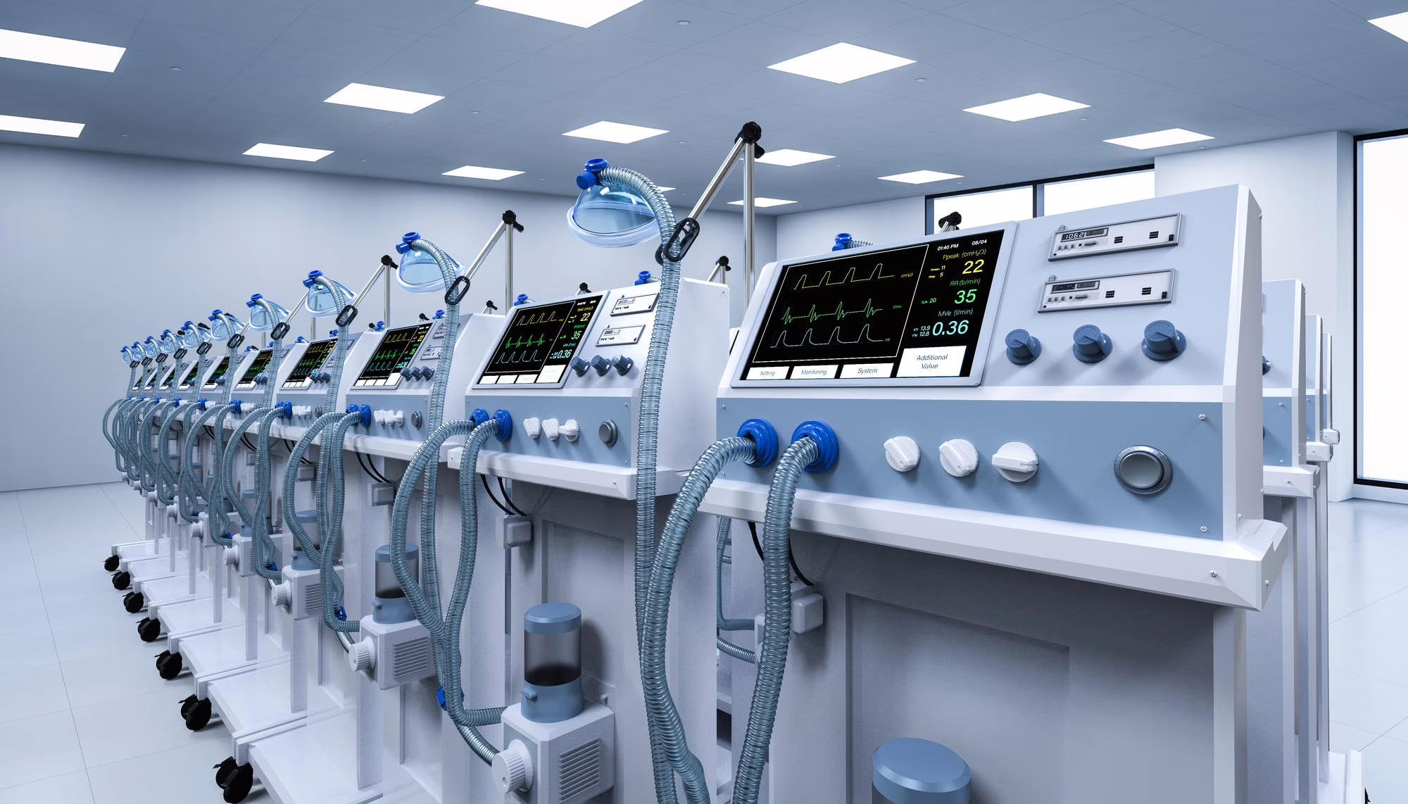 I ventilatori forniscono ossigeno direttamente ai polmoni e possono essere programmati per pompare l’anidride carbonica per pazienti che non sono in grado di espirare da soli. Il ventilatore fornisce ossigeno tramite un tubo che viene inserito attraverso il naso o la bocca del paziente in una procedura nota come intubazione o che viene inserito direttamente nella trachea in una procedura chirurgica nota come tracheostomia. L’estremità opposta del tubo è collegata a una macchina (il ventilatore) che pompa una miscela di aria e ossigeno attraverso il tubo nei polmoni. L’aria viene riscaldata e umidificata prima di entrare nel corpo. Il ventilatore svolge inoltre un ruolo vitale nel mantenere la pressione dell’aria positiva per aiutare a prevenire il collasso degli alveoli polmonari.