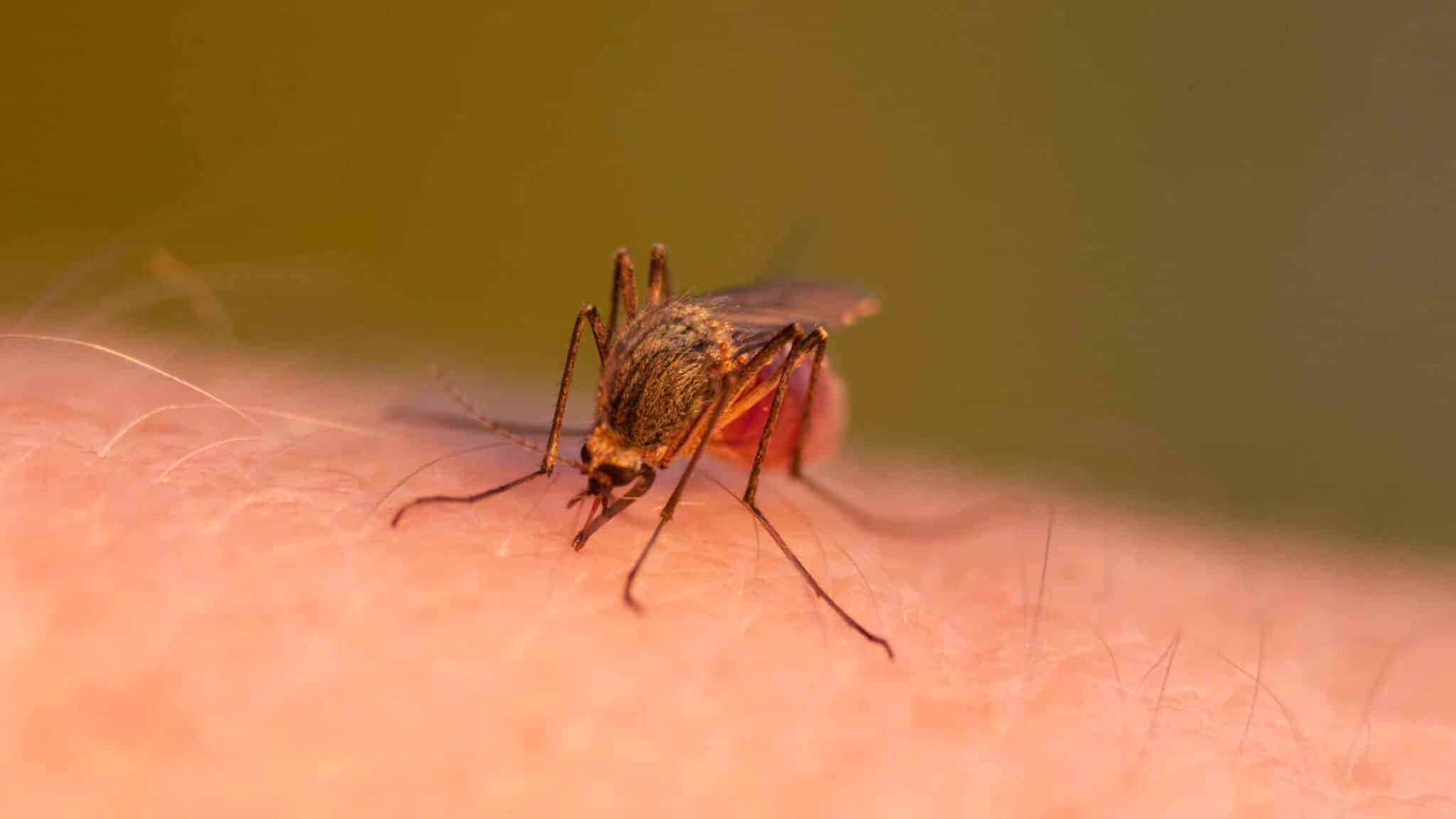 Close-up shot of a mosquito blood sucking on human skin